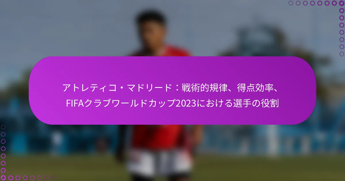 アトレティコ・マドリードの2023 FIFAクラブワールドカップでのパフォーマンスは、彼らの卓越した戦術的規律を示しており、構造化されたフォーメーションと戦略的な守備プレーを通じて明らかです。この規律は、得点効率を高めるだけでなく、さまざまな相手に効果的に適応することを可能にします。明確に定義された選手の役割により、チームは強みを最大限に活かし、トーナメントでの強力な競争相手となっています。 アトレティコ・マドリードは2023 FIFAクラブワールドカップでどのような戦術的規律を示していますか? アトレティコ・マドリードは、構造化されたフォーメーションと戦略的な守備プレーによって特徴づけられる強い戦術的規律を2023 FIFAクラブワールドカップで示しています。この規律は、得点効率を高めるだけでなく、さまざまな相手に効果的に適応することを可能にします。 アトレティコ・マドリードが利用する主要なフォーメーション アトレティコ・マドリードは通常、4-4-2フォーメーションを採用しており、堅固な守備構造を提供しつつ、攻撃への迅速な移行を可能にします。このフォーメーションは、ミッドフィールドでのコンパクトさを維持し、ウィングを効果的に活用することを可能にします。 彼らが利用する別のフォーメーションは3-5-2で、ミッドフィールドに追加のサポートを提供し、ウィングバックが前に出ることを可能にします。このセットアップは、中央で相手を圧倒し、攻撃時に数的優位を生み出すことができます。 4-4-2: バランスの取れた守備と迅速なカウンター攻撃。 3-5-2: 強化されたミッドフィールドのコントロールとウィングプレー。 4-2-3-1: 強固な守備基盤を持つ攻撃の柔軟性。 さまざまな相手に対する守備戦略 アトレティコ・マドリードは、ボールコントロールに苦しむチームに対してハイプレスの守備戦略を採用しています。このアプローチは、相手に迅速な決定を強いることになり、しばしば危険なエリアでのターンオーバーにつながります。 より強いチームに対しては、より保守的な戦略を採用し、コンパクトな形を維持し、プレッシャーを吸収することに焦点を当てます。これにより、相手が過剰に攻め込んだ際にカウンター攻撃の機会を利用することができます。 ゾーンマーキングを利用することで、アトレティコは選手が個々の相手ではなく特定のエリアをカバーすることを確保し、攻撃に対して集団で反応する能力を高めています。 戦術的規律が試合結果に与える影響 アトレティコ・マドリードの戦術的規律は、試合結果に大きな影響を与え、しばしば接戦の試合での勝率を高めます。構造化されたアプローチを維持することで、守備のミスを最小限に抑え、得点機会を活かすことができます。 戦術を効果的に実施できた試合では、アトレティコはボールポゼッションを支配し、より多くの得点機会を創出する傾向があり、好結果につながります。この規律あるプレーは、試合のテンポを管理するのにも役立ち、必要に応じてペースをコントロールすることができます。 異なる試合での調整 アトレティコ・マドリードは、相手の強みと弱みに基づいて戦術的な調整を行うことで知られています。たとえば、相手の攻撃戦略に対抗するために試合中にフォーメーションを変更したり、守備を強化したりすることがあります。 遅れを取っている試合では、追加のフォワードを投入して攻撃の強度を高め、より攻撃的なフォーメーションにシフトすることがよくあります。逆に、リードしている場合は、優位を守るためにより守備的なセットアップに戻ることがあります。 戦術の実施におけるコーチングの役割 コーチングスタッフは、アトレティコ・マドリードの戦術的実施において重要な役割を果たします。相手を分析し、ゲームプランを適応させる能力は、FIFAクラブワールドカップでのチームの成功にとって不可欠です。 コーチは、規律とチームワークの重要性を強調し、選手が各フォーメーション内での役割を理解できるようにします。定期的なトレーニングセッションは、戦術的な意識とプレッシャー下での意思決定を強化することに焦点を当てています。 さらに、コーチングスタッフのハイステークスの試合における経験は、選手に自信を与え、トーナメントの重要な瞬間に戦術を効果的に実行できるようにします。 アトレティコ・マドリードは2023 FIFAクラブワールドカップで得点効率がどれほど高いですか? アトレティコ・マドリードは、2023 FIFAクラブワールドカップで顕著な得点効率を示しており、強力なシュート精度と効果的なコンバージョン率が特徴です。彼らの戦術的規律は、得点機会を活かすことを可能にし、トーナメントでの強力な競争相手となっています。 トーナメントのシュート精度統計 アトレティコ・マドリードのシュート精度は印象的で、50%中盤から高めの範囲にあります。これは、彼らのゴールへの試みの半分以上がター