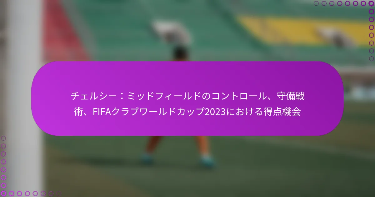 チェルシーの2023年FIFAクラブワールドカップにおける中盤のコントロールは、戦略的なポジショニング、選手の役割、戦術的なフォーメーションの組み合わせによって特徴づけられています。主要な選手を効果的に活用し、ピッチの中央で強い存在感を維持することで、チェルシーはボールを支配し、得点機会を創出することを目指しています。