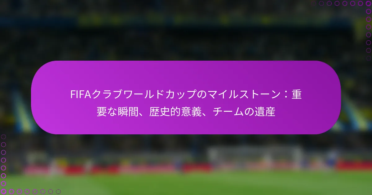 FIFAクラブワールドカップのマイルストーン:重要な瞬間、歴史的意義、チームの遺産