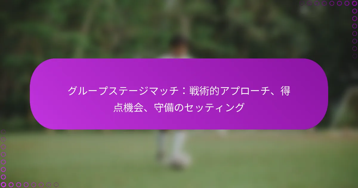 グループステージの試合では、チームは進出の可能性を高めるためにさまざまな戦術的アプローチを戦略的に実施します。相手を分析し、特定のフォーメーションを利用することで、得点機会を創出し、相手のチャンスを制限するための堅固な守備体制を確立します。この攻撃と守備のバランスは、非常に競争の激しいグループステージ環境での成功に不可欠です。 グループステージの試合における主要な戦術的アプローチは何ですか? グループステージの試合では、チームは進出の可能性を最大化するためにさまざまな戦術的アプローチを採用します。これらの戦略は、フォーメーション、選手の役割、相手の分析、ゲームの文脈への適応に関するものが多いです。 チームが使用するフォーメーション戦略 フォーメーション戦略は、チームの全体的なプレースタイルと効果を形成する上で重要です。一般的なフォーメーションには、4-3-3、4-2-3-1、3-5-2があり、それぞれ異なる強みと弱みを提供します。 4-3-3: 幅と攻撃オプションに焦点を当て、ウイングが守備を引き伸ばすことを可能にします。 4-2-3-1: 守備と攻撃のバランスを取り、堅固な中盤の存在を提供し、迅速なトランジションを可能にします。 3-5-2: 中盤でのコントロールと守備の堅実さを強調し、カウンターアタックの機会を生むことが多いです。 チームは相手の強みと弱みに基づいてフォーメーションを調整することがあり、柔軟性が戦術計画の重要な要素となります。 戦術における選手の役割と責任 各選手には、チームの戦術的アプローチに沿った特定の役割があります。これらの役割を理解することは、フィールドでの効果的な実行に不可欠です。 ディフェンダー: 形を維持し、得点機会を防ぐ責任があり、しばしば1対1の戦いに関与します。 ミッドフィールダー: 守備と攻撃のリンク役を果たし、ボールの保持をコントロールし、ゲームのペースを決定します。 フォワード: チャンスをゴールに変える任務があり、鋭いポジショニングとフィニッシングスキルが求められます。 選手間の明確なコミュニケーションと理解は、役割の効果を高め、全体的なチームパフォーマンスを向上させます。 相手分析に基づく戦術の適応 相手を分析することは、戦術的アプローチを調整するために重要です。チームはしばしばライバルの過去のパフォーマンス、強み、弱みを研究し、効果的なゲームプランを考案します。 一般的な戦略には、守備の脆弱性を利用するためにフォーメーションを調整したり、ボール保持に苦しむチームに対してプレス戦術を採用したりすることが含まれます。この適応力は、試合の結果に大きな影響を与える可能性があります。 コーチはまた、ビデオ分析ツールを利用して相手のプレーのパターンを特定し、試合前や試合中に情報に基づいた調整を行うことができます。 ゲームの文脈が戦術的決定に与える影響 試合の文脈、得点、残り時間、トーナメントの重要性などは、戦術的決定に大きく影響します。チームはこれらの要因に基づいて、より攻撃的または保守的なアプローチを採用することがあります。 たとえば、チームがリードされている場合、より攻撃的なフォーメーションにシフトし、得点機会を増やすために守備の安定性を犠牲にすることがあります。逆に、リードしているチームは、ボール保持を維持し、守備を固めることに焦点を当てるかもしれません。 ゲームの文脈を理解することで、チームはタイムリーな調整を行い、有利な結果を得る可能性を高めます。 成功した戦術的アプローチの歴史的例 歴史的な試合は、成功した戦術的アプローチに関する貴重な洞察を提供します。たとえば、2014年のFIFAワールドカップでは、ドイツが4-3-3フォーメーションを使用することでボール保持を支配し、多くの得点機会を創出し、最終的にチャンピオンシップの勝利につながりました。 同様に、UEFAチャンピオンズリーグでは、バルセロナのようなチームが「ティキタカ」として知られるボール保持スタイルを効果的に利用し、短いパスと動きで守備を崩すことに成功しています。 これらの例は、高リスクの試合で成功を収めるための戦術的革新と適応の重要性を強調しています。 チームはグループステージの試合でどのように得点機会を創出しますか? チームは、戦略的なプレー、効果的な選手の動き、状況認識を通じてグループステージの試合で得点機会を創出します。相手を分析し、特定のフォーメーションを利用することで、チームはゴールを決めるチャンスを最大化できます。 得点チャンスを生むプレーの種類 得点機会を生み出すのに効果的なプレーの種類はいくつかあります。これにはセットプレー、カウンターアタック、ビルドアッププレーが含まれます。各タイプには独自の強みがあり、チームのスタイルや相手の弱みに応じて適応できます。 セットプレー: フリーキックやコーナーキックは、うまく実行されれば高品質