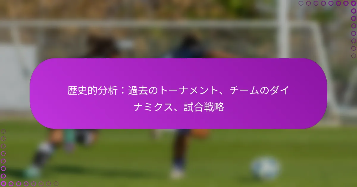 過去のトーナメントの歴史的分析は、チームのダイナミクスと試合戦略の複雑な相互作用を明らかにし、これらの要素がどのように進化してきたかを示しています。スポーツにおける重要なマイルストーンを検証することで、競争の発展や重要なイベントの結果を形作った戦術的アプローチについての洞察を得ることができます。これらの要因を理解することは、スポーツへの理解を深めるだけでなく、将来の戦略やチーム編成にも役立ちます。