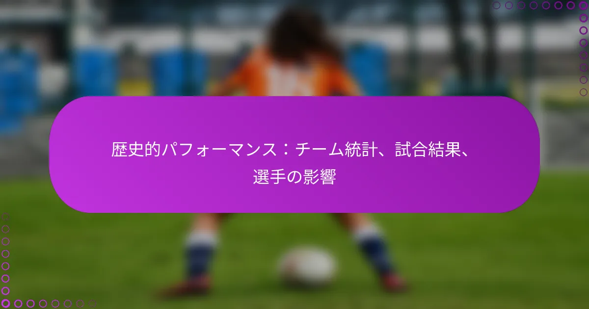 スポーツにおける歴史的パフォーマンスの分析は、主要なチーム統計、試合結果、選手の影響を調査することを含みます。勝敗記録、得点平均、防御指標は、チームの効果性と一貫性について貴重な洞察を提供します。さらに、試合結果や個々の選手の貢献の重要性を理解することは、チームの遺産や全体的な成功を評価するために不可欠です。 歴史的パフォーマンスにおける主要なチーム統計は何ですか? 歴史的パフォーマンスにおける主要なチーム統計には、勝敗記録、得点平均、防御指標が含まれます。これらの指標は、チームの効果性と一貫性についての洞察を提供し、選手の影響やコーチング戦略を評価するのに役立ちます。 シーズンごとの勝敗記録 勝敗記録は、異なるシーズンにおけるチームの成功の基本的な指標です。勝った試合と負けた試合の総数を反映し、全体的なパフォーマンスを簡単に評価することができます。 例えば、勝敗記録が50-30のチームは強いパフォーマンスを示しており、30-50の記録は苦戦を示しています。複数のシーズンにわたってこれらの記録を追跡することで、一貫した改善や低下といったパターンを明らかにすることができます。 勝率が.500を超えるチームは一般的に競争力があると見なされます。 選手の怪我やロースターの変更により、シーズンごとに変動が生じることがあります。 長期的なトレンドは、コーチング戦略の効果を示す場合があります。 得点平均と防御指標 得点平均と防御指標は、チームの攻撃力と防御力を理解するために重要です。得点平均は、チームが試合ごとに何点を得点するかを示し、防御指標は相手チームが得点するのをどれだけ効果的に防ぐかを明らかにします。 一般的に、多くのリーグでは、試合ごとの得点平均が約100点であることが競争力があると見なされます。防御指標は、得点平均よりも低いことが理想的で、ポジティブな得点差を確保するために重要です。 高い得点平均と低い得点許容は、勝ち記録につながることが多いです。 防御指標には、スティール、ブロック、リバウンドが含まれ、全体的な効果に寄与します。 これらの平均を監視することで、チームパフォーマンスの強みと弱みを特定するのに役立ちます。 時間の経過に伴うチームパフォーマンスのトレンド 時間の経過に伴うチームパフォーマンスのトレンドを分析することで、チームがどのように進化しているかについて貴重な洞察を得ることができます。パフォーマンストレンドは、チームが改善しているのか、低下しているのか、一貫しているのかを明らかにすることができます。 例えば、数シーズンにわたって勝率が一貫して増加しているチームは、より強力なロースターやより良い戦略を発展させている可能性があります。逆に、パフォーマンスの低下は、管理の不備や選手の不満といった問題を示すことがあります。 シーズンごとの比較は、選手の獲得や喪失の影響を強調することができます。 長期的なトレンドは、コーチングスタッフやその哲学の変化を反映することもあります。 統計分析ツールは、これらのトレンドを効果的に視覚化するのに役立ちます。 コーチングの変更が統計に与える影響 コーチングの変更は、チームの統計に大きな影響を与えることがあり、チームのプレースタイルや全体的なパフォーマンスを変えることがよくあります。新しいコーチは異なる戦略を持ち込み、勝敗記録や選手の統計に即座に変化をもたらすことがあります。 例えば、防御スタイルで知られるコーチはチームの防御指標を改善するかもしれませんが、攻撃戦略があまり攻撃的でない場合、得点平均に悪影響を及ぼす可能性があります。コーチングの変更の影響を評価するには、移行前後のパフォーマンスを見なければなりません。 コーチングの変更は、パフォーマンスの短期的な向上や長期的な低下をもたらすことがあります。 新しいシステムへの選手の適応には時間がかかることがあり、シーズン初期の統計に影響を与えることがあります。 以前のコーチの下での歴史的パフォーマンスは、現在の変化の文脈を提供することができます。 リーグ平均との比較分析 リーグ平均との比較分析は、チームのパフォーマンスを同業者と関連付けるのに役立ちます。主要な統計を比較することで、チームは強みと弱みの領域を特定できます。 例えば、チームの得点平均がリーグ平均を大幅に上回っている場合、それは強力な攻撃を示すかもしれません。逆に、防御指標が平均を下回っている場合、その領域での改善の必要性を強調することがあります。 統計 チーム平均 リーグ平均 得点平均 105 PPG 100 PPG 許容ポイント 98 PPG 102 PPG 勝敗記録 45-37 40-42 これらの比較を定期的にレビューすることで、チームは選手の育成や戦略的調整に関する情報に基づいた意思決定を行うことができます。 歴史的パフォーマンスを理解するために重要な試合結果は何ですか? スポーツにおける歴史的