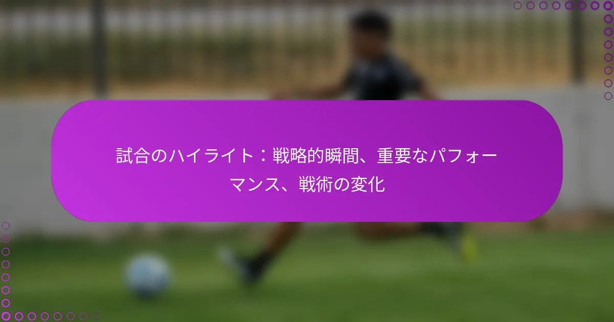 試合のハイライト:戦略的瞬間、重要なパフォーマンス、戦術の変化
