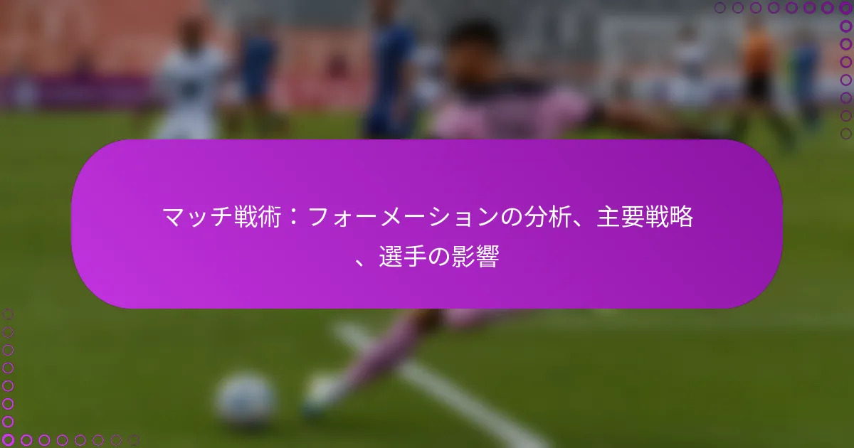 マッチ戦術:フォーメーションの分析、主要戦略、選手の影響