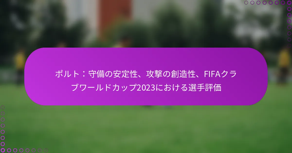 重要な選手のパフォーマンスは、FCポルトの2023年FIFAクラブワールドカップでの成功に直接結びついていました。強力な守備のパフォーマンスは、チームが接戦で競争力を保つことを保証し、攻撃の貢献は重要なゴールにつながりました。